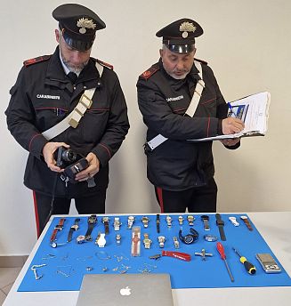 Durante il controllo a carico di uno dei due uomini è stata rinvenuta una modesta quantità di hashish. Ma non è finita qui. I carabinieri, approfondendo i controlli, hanno trovato anche numerosi orologi, preziosi, occultai nelle fodere di alcune borse, così come un pc portatile e una macchina fotografica di valore. Il contesto è apparso da subito come quello di una gang dedita presumibilmente a furti in appartamento, su auto in sosta e quant’altro. La perquisizione ha permesso di scovare anche la chiave di un’auto, una Lancia Y parcheggiata in una vicina area, anch’essa provento di un furto commesso a Roma a marzo.