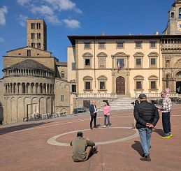 La puntata si apre poi al paesaggio dell'Arno e di Ponte Buriano, luogo legato all'immaginario leonardesco, per arrivare infine al tema dell'energia e della trasformazione contemporanea". A guidare il pubblico in questo itinerario Federico Quaranta e Daria Luppino che in Piazza Grande hanno intervistato un ospite d'eccezione...l’araldo della Giostra del Saracino Francesco Sebastiano Chiericoni.
