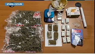La perquisizione dava esito positivo e consentiva di rinvenire all’interno dell’abitazione 10 involucri in cellophane trasparente termosaldati contenenti 68 grammi di sostanza stupefacente del tipo cocaina, 3 sacchetti di tipo alimentare in nylon annodati e contenenti altri 156 grammi cocaina, 5 panetti di sostanza stupefacente del tipo hashish per un peso complessivo lordo di mezzo chilogrammo ed infine 2 buste in nylon trasparenti contenenti complessivamente 1 kilogrammo di marijuana, oltre a bilancini ed altro materiale atto al taglio e al confezionamento dello stupefacente. Il tutto veniva debitamente posto sotto sequestro.